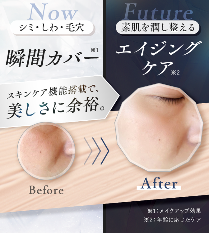ヒト幹細胞培養液※1やナイアシンアミド※2などエイジングケア※3に特化した有効成分に加え、UVカット機能もあわせもつ「時短×機能性」を叶えるオールインワンファンデーションです。